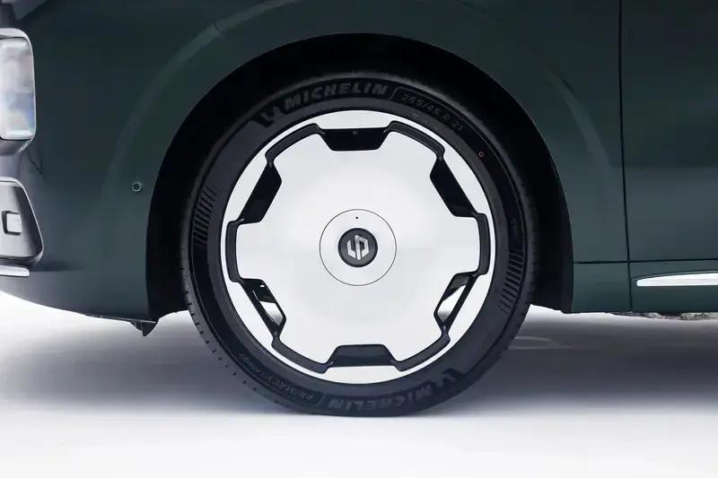 车身侧面•◆▷,新车整体较为简洁大气。采用了研发投入高达2000万元的天空之镜纯平侧窗。此外新车还搭载21英寸向往之境轮毂和米其林高性能静音轮胎。