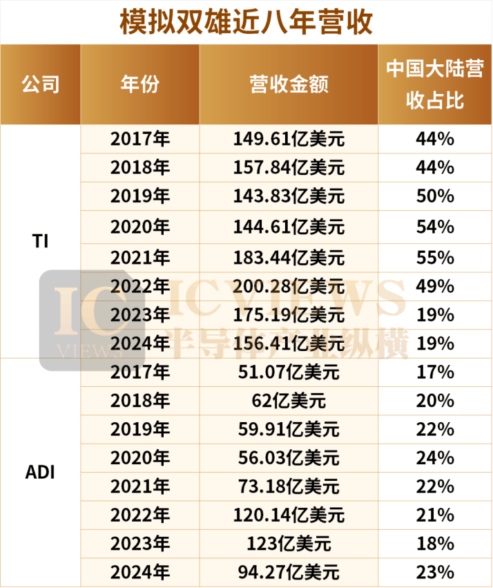 从图表数据看,TI 与 ADI 在华收入占比呈现 “先升后分化-▲-” 的趋势。