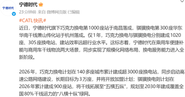 广泛的产业合作是换电网络快速扩展的重要推动力。宁德时代与中国石化、国家电网、南方电网☆▲、滴滴及多地交通投资集团等达成战略合作。□=△“资源共享▷-◆、优势互补▽”的长周期共赢模式△,共同推进站点建设与运营。按照规划▼,2026年,巧克力换电计划在140多座城市累计建成超3000座换电站,同步启动高速公路网络建设,长期目标为3万座,并将开放加盟计划。