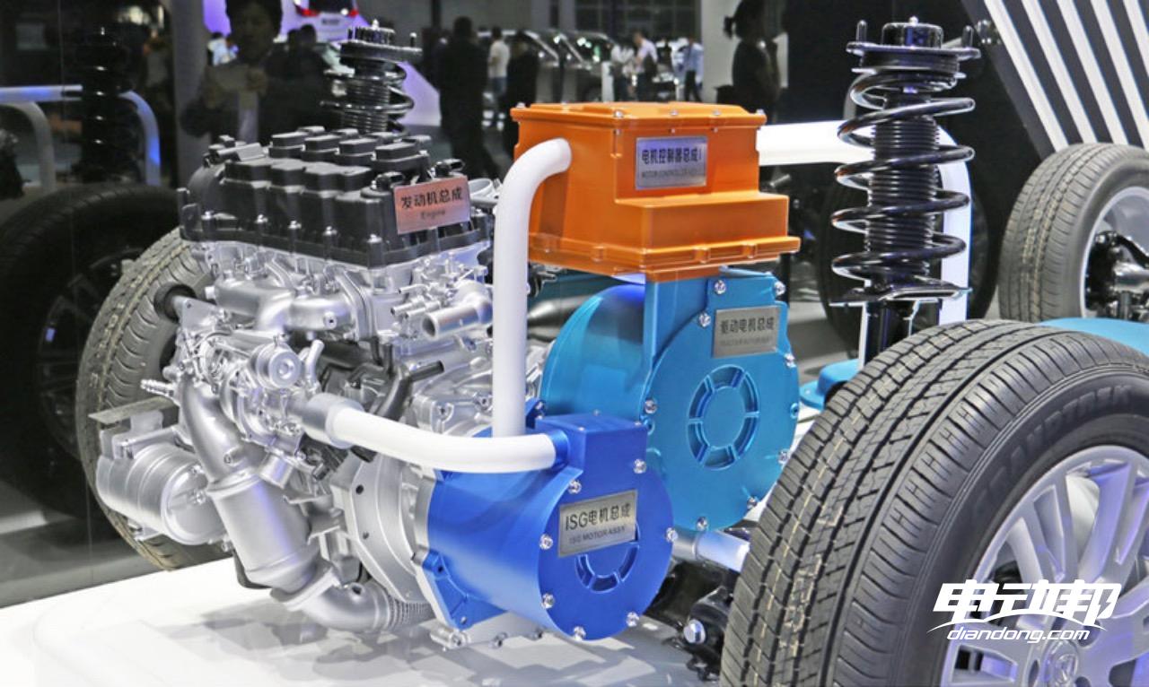前桥混动总成:即由「发动机」、「P1电机」(ISG发电机)和「P3电机」(驱动电机)构成,只是「电控系统」的集成度有待提升;