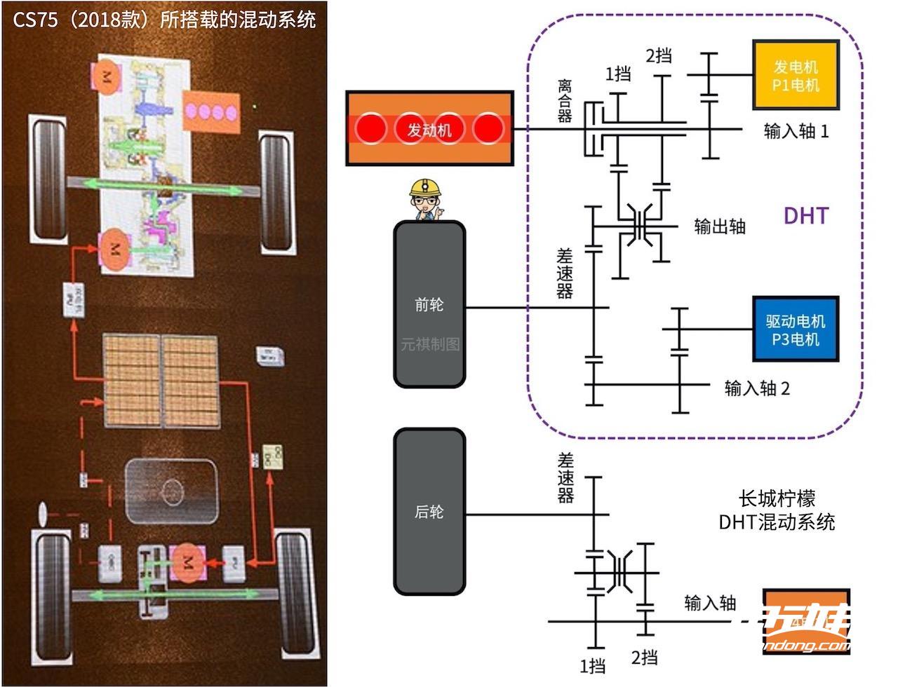 而加入后桥的「P4电机」后,其基本结构就与目前「长城柠檬DHT混动系统」相似(注意:不是『相同』)★☆。故此,整套混动系统的基本逻辑是:
