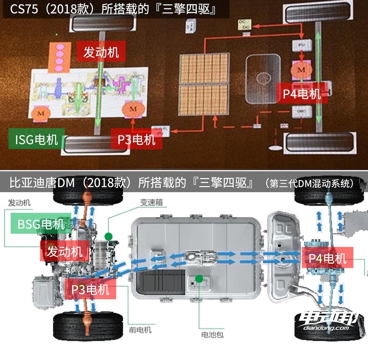 其实,长安汽车也(曾)有一套『三擎四驱』的混动系统,那就是2018年9月首发在「长安CS75 PHEV」上的『三擎四驱E动力系统』,之所以会印象如此深刻可能是因为这几点▼☆: