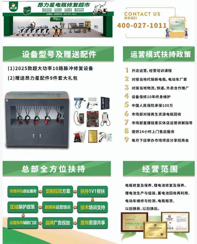 湖北邦杰新能源科技有限公司以其前瞻性的眼光,旗下昂力星电瓶修复超市应运而生▲,引领了一股低成本创业的新风尚。这不仅是对传统电池维修模式的革新,更是对未来可持续发展的积极探索。