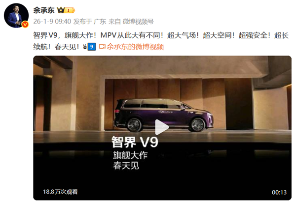 同时,智界V9还会搭载新一代华为乾崑智驾硬件、满血版华为途灵底盘平台,以及最新的鸿蒙座舱系统。