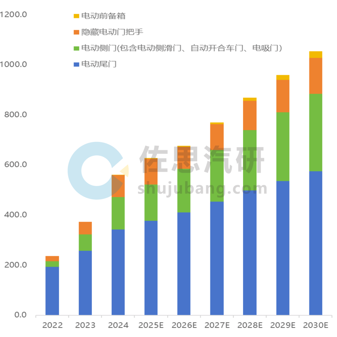 电动侧滑门: 主要服务于MPV及中大型SUV市场,同比增长率达17.0%,市场渗透率稳步提升至3.2%。