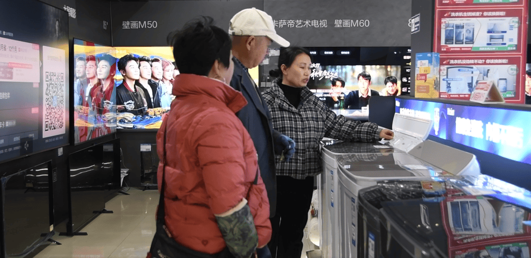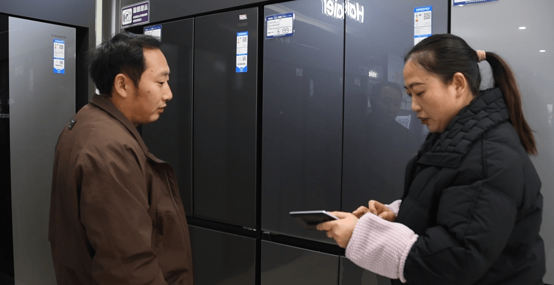 1月14日,记者走进县城内各家销售家电的门店△=●,店内消费者络绎不绝☆★,热闹非凡。在空调、冰箱等家电展区▼-,前来咨询政策-▷□、挑选产品的消费者络绎不绝★=…,导购员穿梭其间,忙着讲解补贴规则、演示产品性能•□•。
