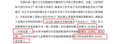 在关键细分市场,埃泰克的市场地位持续领先,核心产品成为业绩支柱。根据高工智能汽车研究院统计,2024年埃泰克在中国自主品牌乘用车车身(区域)控制器市场占有率达25.50%▽…■,连续三年排名第一,产品涵盖车身控制器•○•、车身域控制器、区域控制器,该细分市场2024年规模约102亿元;在中国乘用车前装标配遥控实体钥匙市场•◆•,埃泰克占有率13◁◁.83%,位居第一•,对应市场规模约28亿元;在中国自主品牌乘用车前装标配座舱域及显示屏总成市场…○▪,占有率6△.41%,排名第三,相关市场规模约200亿元□。