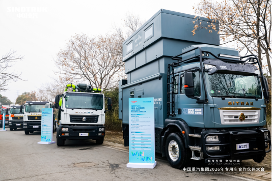 2026年,中国重汽专用车已清晰锚定“产品、生态、价值、出海”四大发展主轴——持续深化产品力,提供“更懂场景”的产品,在可靠性、经济性、轻量化、智能化及电气化上实现全面优化;提升生态力,开发覆盖“买、用、管、养、换”全生命周期的绿色智能生态解决方案,共建“全域无忧”生态;重塑营销力,从品牌持续向上、服务提效提质等多方面,加快“价值营销”转型;强化协同力,打造“协同出海”新格局,推动中国专用车产品与解决方案走向世界。