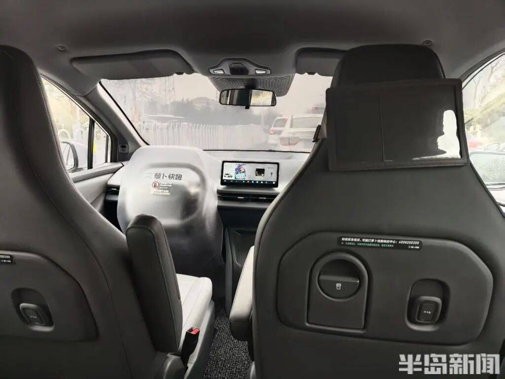 从上路车辆来看,目前青岛区域运行的萝卜快跑车型为江铃集团“颐驰06”。该无人车限乘3名乘客,其中副驾驶座1人、后座2人。