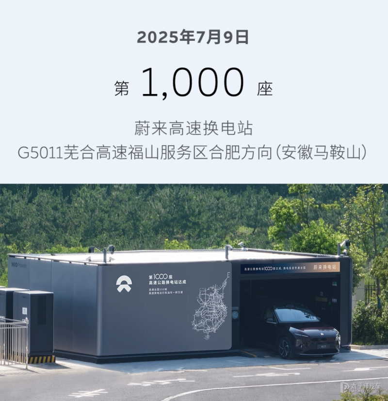 2025年7月,蔚来高速换电站突破1000座,覆盖全国550个城市。蔚来能源的“加电合伙人”计划已与25个省市、地区的35家城投、交投等合作伙伴共建近200座充换电站。