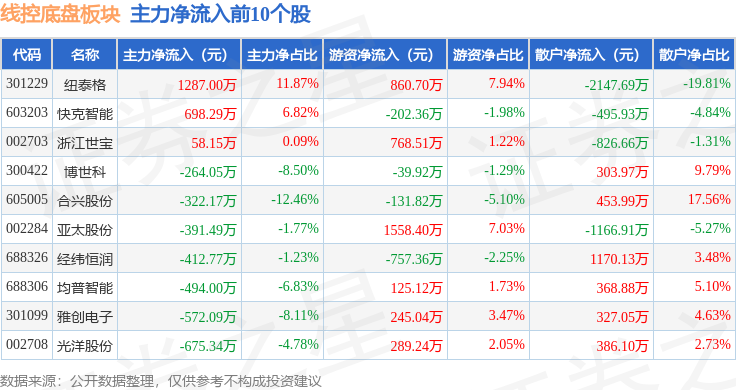 从资金流向上来看,当日线控底盘板块主力资金净流出9809.22万元,游资资金净流入4246.05万元,散户资金净流入5563.17万元。线控底盘板块个股资金流向见下表: