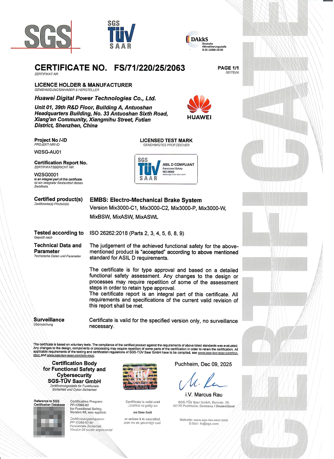 解决用车痛点,行业“点赞”华为DriveONE创新华为DriveONE的创新始终围绕用户需求展开。在能效领域,华为DriveONE率先在与车企的A级车度电续航联合测试中实现“度电12公里”,度电续航达到行业天花板。融合驱动是近年来车企和零部件供应商的主攻方向之一。在今年,华为DriveONE的融合驱动产品全球首获DAkkS 最高等级ASIL D功能安全认证(汽车功能安全领域的国际最高标准),认证范围涵盖控制器、执行器等,覆盖基础制动、防抱死系统、防滑系统、电子稳定性控制、再生制动等融合系统控制特性,印证了其行业领先和产品可靠。而连续三年斩获“新能源乘用车中高端车型动力总成供应商质量表现第一名”,更是产品质量和用户信赖的双重肯定。